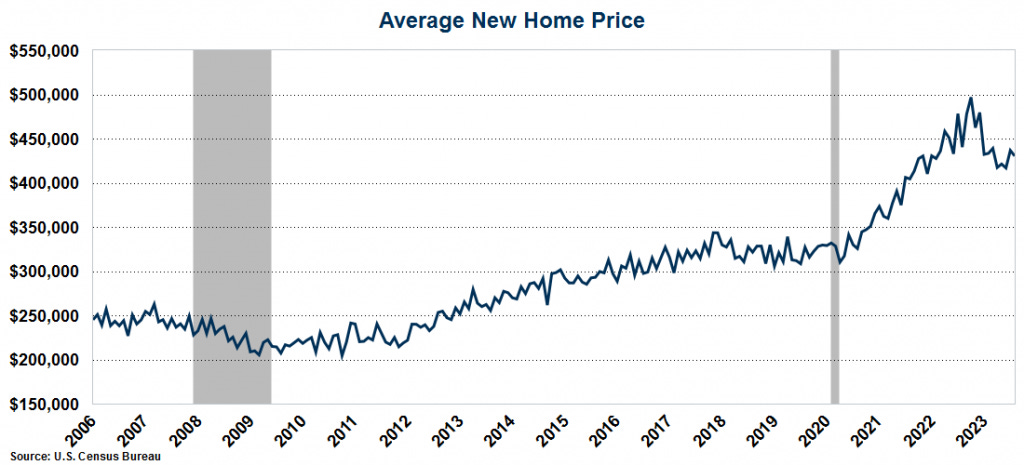 However, even with declining sales, the average price of a new home dropped slightly to $430,300. That is still well above pre-pandemic levels, but significantly off the peak of $496,800 from October 2022. However, at more than $430K, if the Fed was looking to increase housing affordability by driving prices down with rising interest rates, they have failed. Rather, existing home owners are choosing to simply stay in their homes turning would-be buyers into renters and driving up the price of the limited inventory.