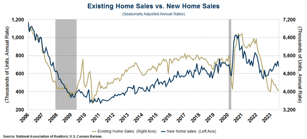 Sales of existing homes declined in August to the lowest level since January. This is the third consecutive month of declines reflecting the limited inventory and historically high mortgage rates. Similarly, sales of new homes plunged in August, dropping 8.7%, nearly 4x the 2.2% drop that experts were expecting. This was the biggest drop since September 2022 and confirms the decline in home builder sentiment that we reported on last week.