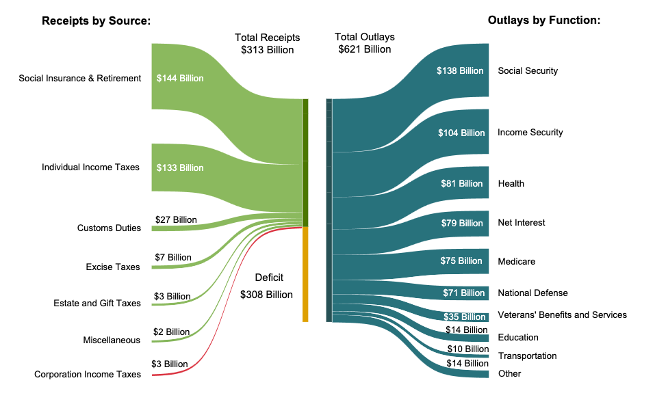 That means that over the first five months of FY2026 (October through February), the budget deficit is $1 trilion. In five months, we spent $1 trillion more than we took in. That is the third-worst start to a fiscal year in our history.