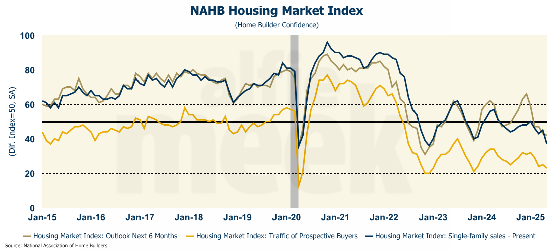 But the fact is that builder sentiment has been down for a while, tracking closely with the 30-year mortgage rate, which has remained stubbornly high. And this week has seen the 10-year yield rise even higher. Housing affordability is just awful right now, even before any talk of tariffs. I myself have been looking at houses recently, and can not believe how unaffordable housing has become. As I scroll through the pages of homes for sale, I ask myself, ” Who can afford these?” Because I certainly can’t. And I believe that many people are coming to the same conclusion.