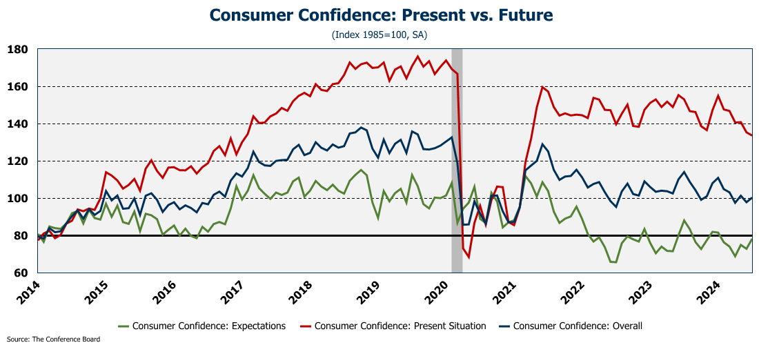Overall consumer confidence rose 2.5% in July to 100.3 (full release here). Or did it……