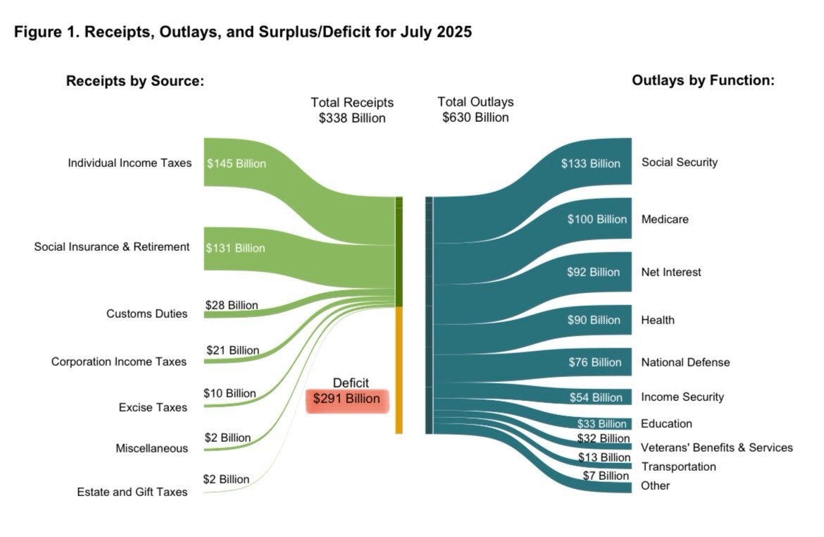 I realized that no one else believes this, or at least they don’t seem to be willing to say it, but the federal debt is the single most important issue in our country. Look at the chart. We spent $92 billion in net interest in July. More than on health care. More than on national defense. Nearly three times more than we spent on education.