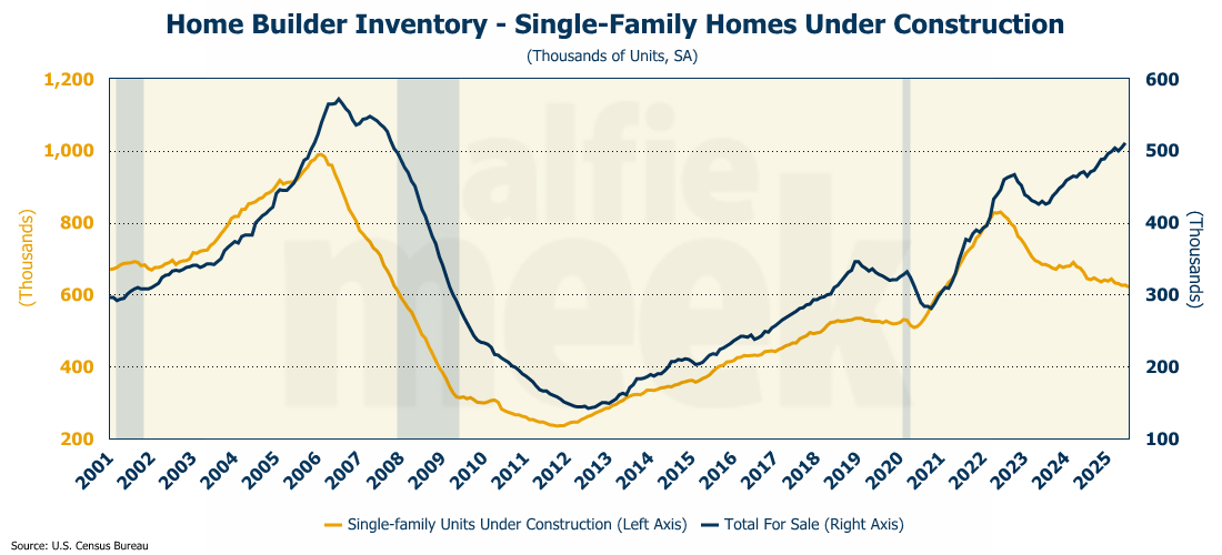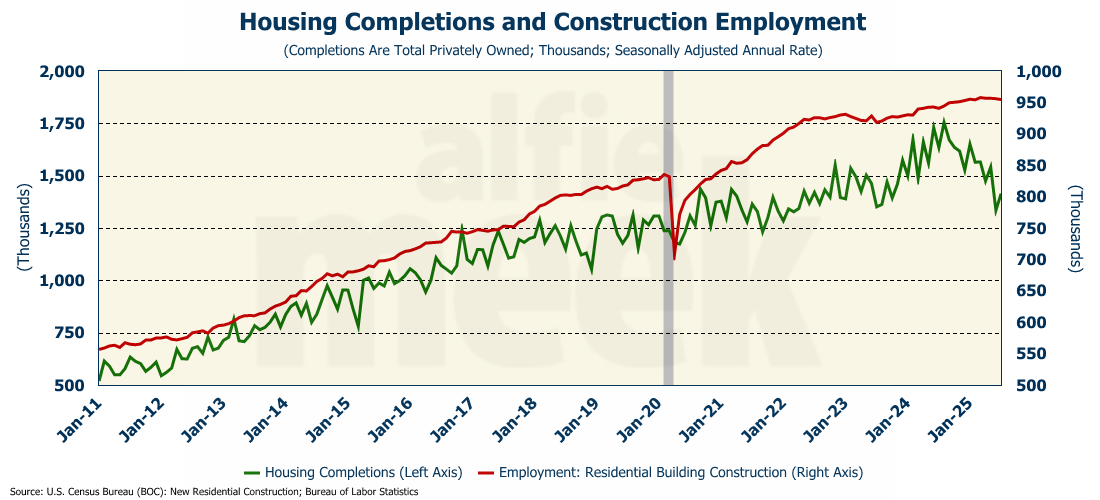 Housing completions have been falling for a year. Clearly builders are slowing production - either because demand is weak and inventory is high; or because everyone who knows how to build a house has been deported or has left voluntarily.