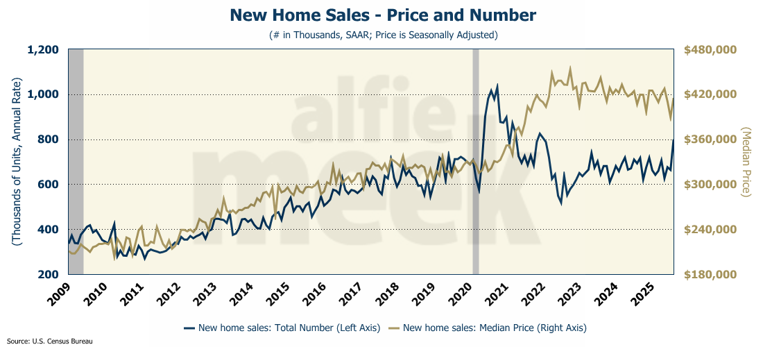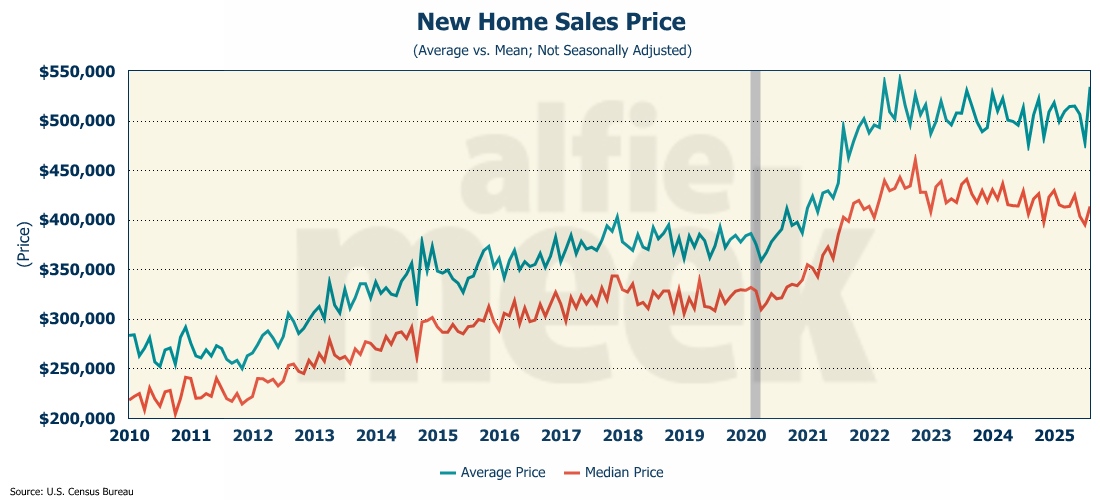 Unfortunately, prices also rose, with the median price rising to $413,500. However, the AVERAGE price of a new home shot up to $534,100 - the third highest level ever.