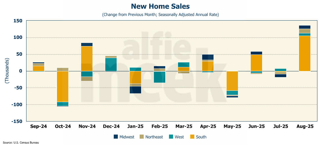 So what drove the jump in new home sales? Mortgage rates were down slightly in August, but that certainly wasn’t enough to drive this many people into the market. There was a decline in the number of new homes for sale, 490,000, which is the lowest level of available inventory this year. Another factor may have been sales incentives, which have accelerated. As I reported a few weeks ago, according to the National Association of Home Builders, two-thirds of builders are using sales incentives, which is the highest level since early 2020 during COVID. As an example, home builder Lennar Corp. recently said they were offering sales incentives equal to 14.3% of its average sale price, which is more than double the usual 5%-6%.