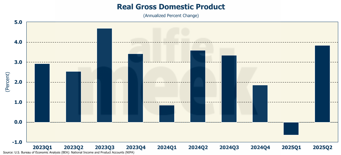 Back in July, they told us that the 2nd quarter GDP rose at an annual rate of 2.96%. Then, in August, they revised that up to 3.29%. Lo and behold, it turns out that both of those estimates were WAY off and the economy actually grew at a blistering 3.83% in the second quarter - the highest rate since late 2023 (full release here).