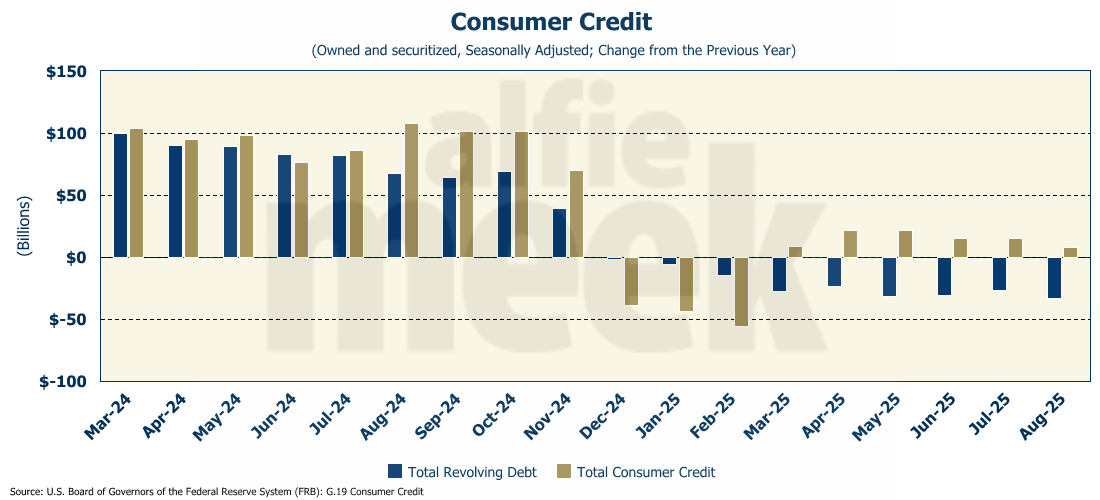 Total consumer credit, however, was up 0.2% over August 2024, or $8.2 billion. Most of that growth was in auto loans and student loans.
