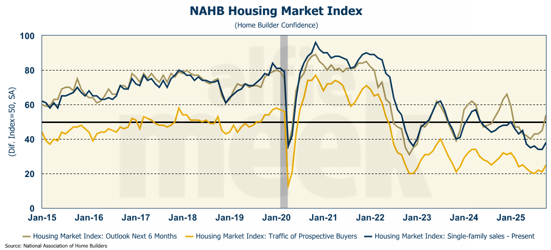 Even so, the overall housing market remains challenging for builders, with 38% reporting cutting prices, with the average price reduction rising to 6% in October. The last time builders reported cutting prices by 6% was late 2024.