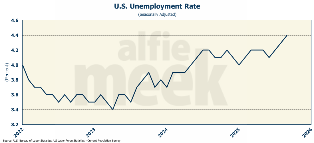 Also, despite the increase in establishment employment, the household survey showed an increase in the unemployment rate to 4.4% - the highest in four years.