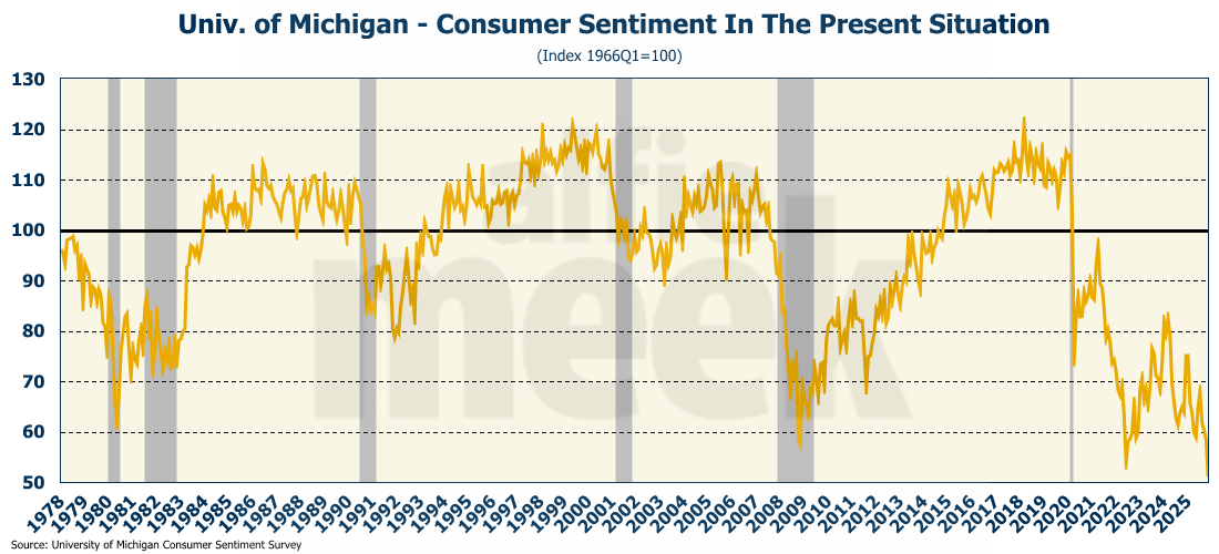 Looking at the sub-indices, consumer sentiment in the present situation plunged 7.5 points to 51.0, the lowest level in the survey’s history going back to when it began in 1978.