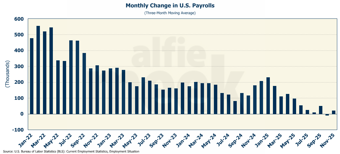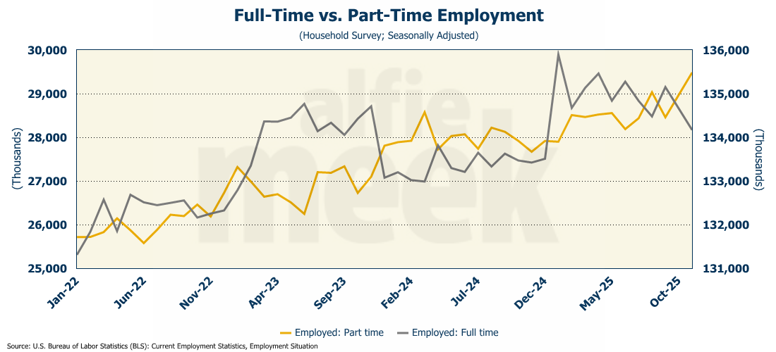 With respect to the household data, there will never be household data for October 2025, as that is survey data, and there was no one at work to do the survey. (Future trivia question…what was the unemployment rate in October 2025? Answer: There was no unemployment rate.) However, for November, the unemployment rate rose to a four-year high at 4.6%, which was higher than expected.